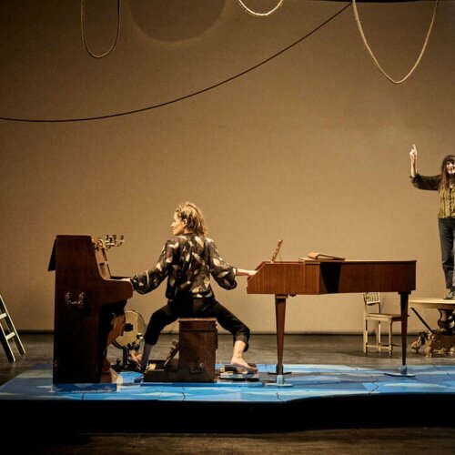 Sur scène deux filles épatantes. La première, Élise Caron, magicienne de la voix chantée, parlée, ébouriffée. Artiste inclassable et surdouée, elle navigue entre chanson, théâtre et improvisation. La seconde, Jeanne Bleuse, femme-orchestre lumineuse, réinvente l’art des claviers – piano, clavecin, ou tout ce qui sonne – aussi bien sur les grandes scènes que dans sa roulotte itinérante. Complices espiègles de la musique et du récit, elles embarquent le public dans un voyage fantaisiste et poétique, peuplé de personnages « étranges et familiers », où les situations et les musiques s’inventent sous nos yeux. À mi-chemin entre opéra de poche classico-pop, conte musical et duo burlesque, ce spectacle s’annonce comme un petit bijou d’invention scénique. Une escapade joyeuse pour ouvrir grand les portes de l’imaginaire.